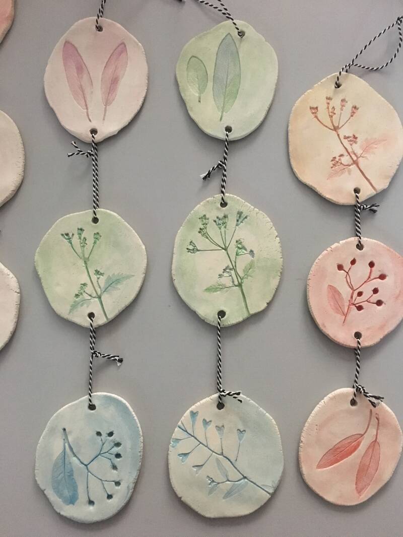 Plateautjes en schaaltjes met plantenafdruk en glazuur